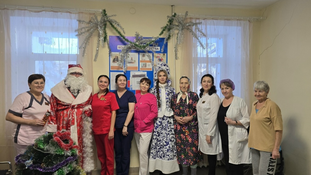 Терапевтическое отделение на время стало уютным концертным залом. Наши мудрые бабушки и дедушки улыбались, пускались в пляс и подпевали знакомые мелодии. Казалось, они снова на мгновение стали теми мальчишками и девчонками, которые верят в Деда Мороза. Это была не просто встреча — это было возвращение в детство.