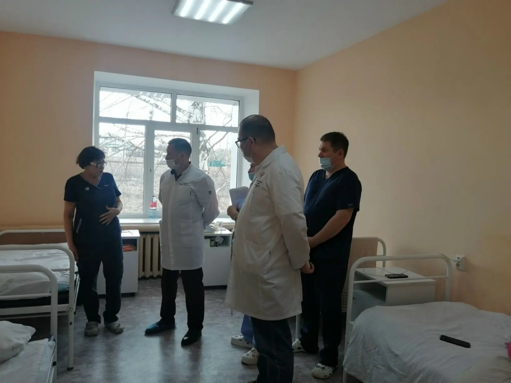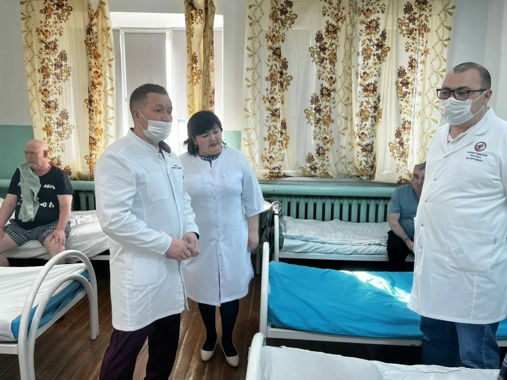 Главный врач Феликс Сакаев и его заместитель Руслан Сайфутдинов регулярно проводят обходы в стационарных отделениях. И это не просто формальная проверка «для отчёта», а живое общение на местах.